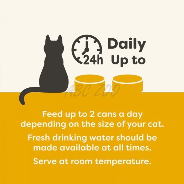 Odporúčané dávkovanie: Mačky s hmotnosťou 3–5 kg: 2 konzervy denne