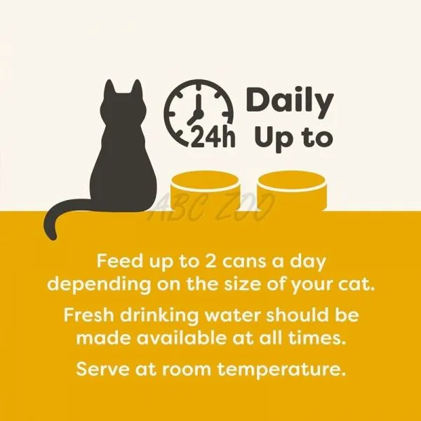 Odporúčané dávkovanie: Mačky s hmotnosťou 3–5 kg: 2 konzervy denne