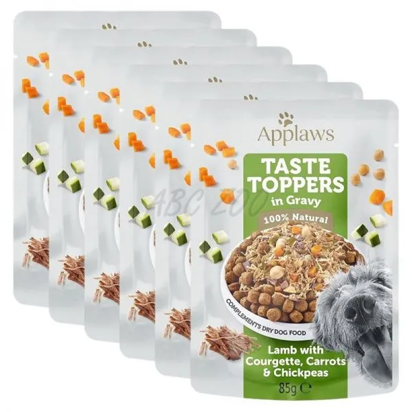 Applaws Dog Taste Toppers in Gravy je prémiové prírodné krmivo v kapsičke pre psov s jahňacím mäsom, cuketou, mrkvou a cícerom v lahodnej omáčke.