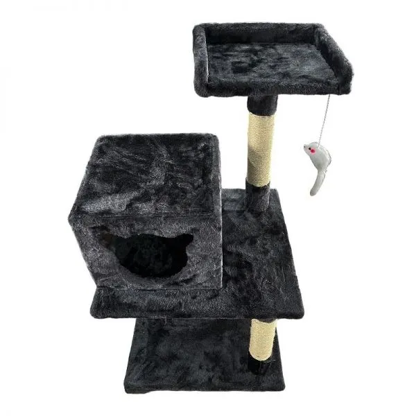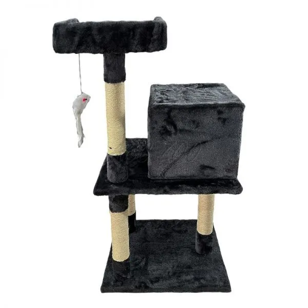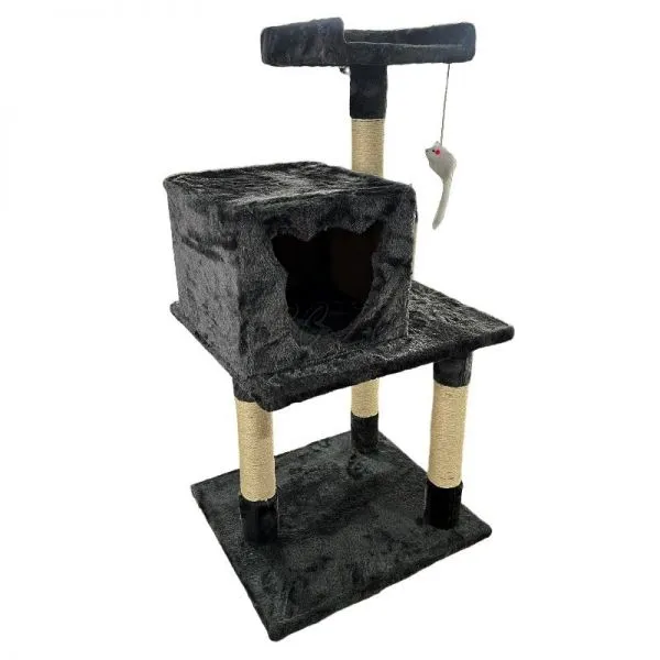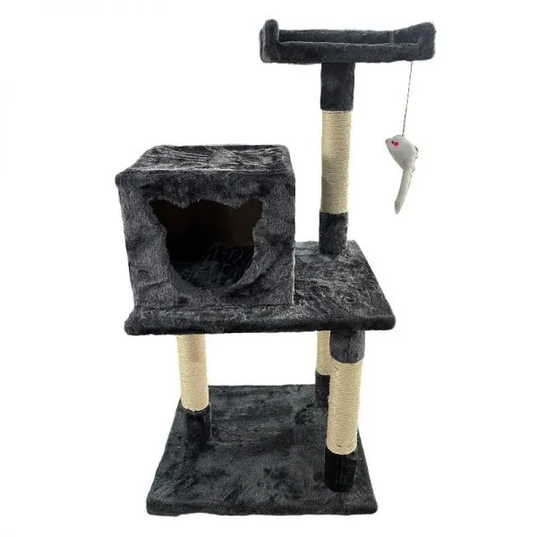 Toto stabilné a kompaktné škrabadlo ponúka všetko, čo vaša mačka potrebuje pre každodennú zábavu a oddych. V spodnej časti sa nachádza útulný box na spanie s roztomilým vchodom v tvare mačacej hlavy, zatiaľ čo horná vyhliadka umožňuje pohodlný odpočinok s výhľadom. Nechýba ani hravá plyšová myš zavesená na šnúrke, ktorá podporuje inštinktívne hranie a aktivitu vašej mačky.