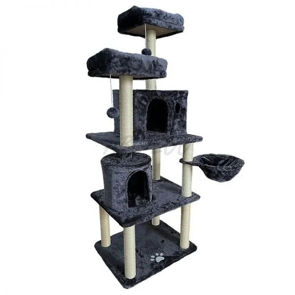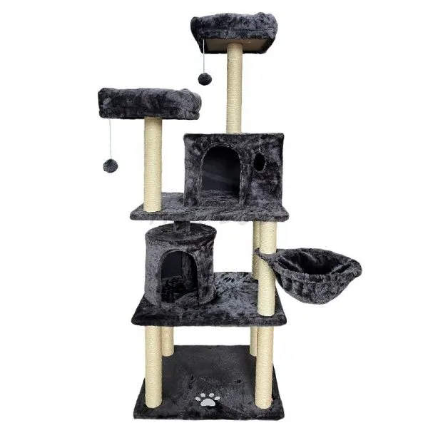 • Multifunkčné riešenie – kombinuje škrabadlo, odpočívadlá, domčeky aj hračky v jednom