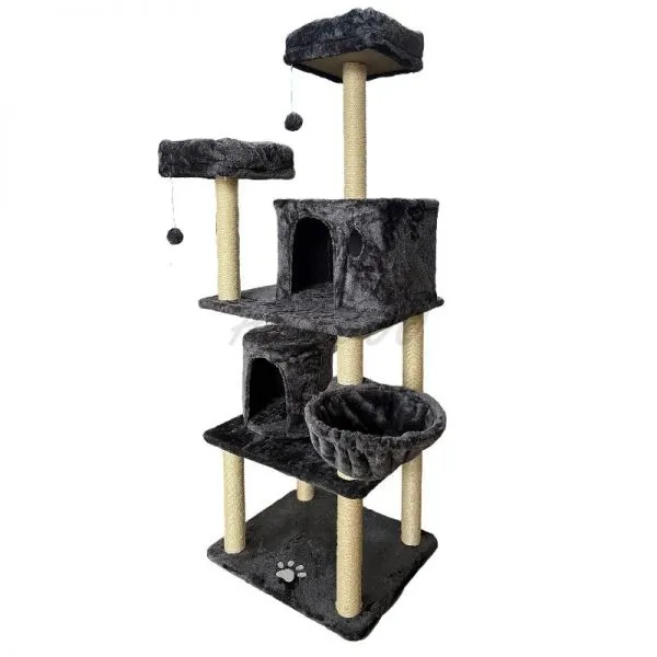 Toto škrabadlo je ideálnou voľbou pre domácnosti s viacerými mačkami. Vďaka svojim štyrom poschodiam a bohatej výbave ponúka rôzne možnosti aktivít – od škrabacích stĺpikov až po domčeky a odpočívadlá. Mäkký plyšový poťah a pevná konštrukcia zaručujú pohodlie a bezpečnosť pre každú mačku.
