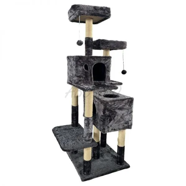 Toto vysoké mačacie škrabadlo ponúka kombináciu odpočívadiel, domčekov a škrabacích stĺpikov, vďaka čomu si vaša mačka môže hravo uspokojiť svoje inštinkty. Dve priestranné skrýše poskytujú dostatok súkromia, zatiaľ čo vyvýšené ležadlá umožňujú pozorovanie okolia z výšky. Sisalové stĺpiky slúžia ako ideálne miesto na brúsenie pazúrikov, čím ochránite svoj nábytok pred poškriabaním.