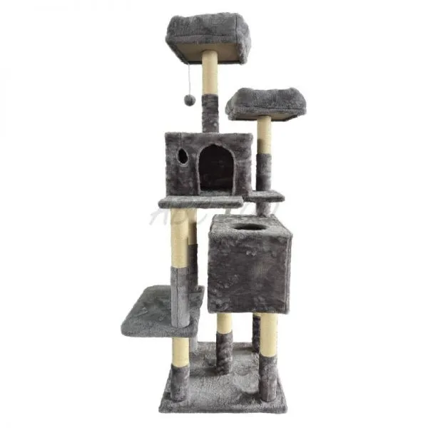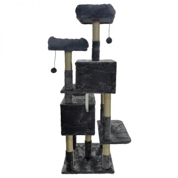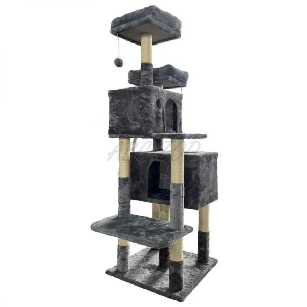 Toto vysoké mačacie škrabadlo ponúka kombináciu odpočívadiel, domčekov a škrabacích stĺpikov, vďaka čomu si vaša mačka môže hravo uspokojiť svoje inštinkty. Dve priestranné skrýše poskytujú dostatok súkromia, zatiaľ čo vyvýšené ležadlá umožňujú pozorovanie okolia z výšky. Sisalové stĺpiky slúžia ako ideálne miesto na brúsenie pazúrikov, čím ochránite svoj nábytok pred poškriabaním.
