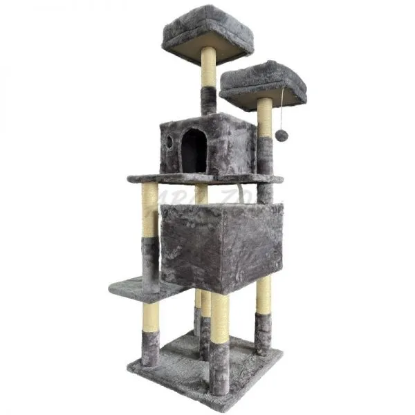 • Kvalitný materiál – povrch potiahnutý mäkkým plyšom, sisalové škrabacie stĺpiky