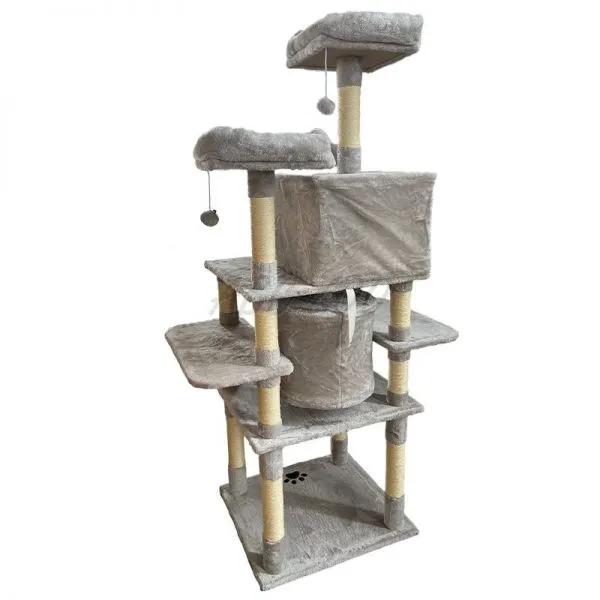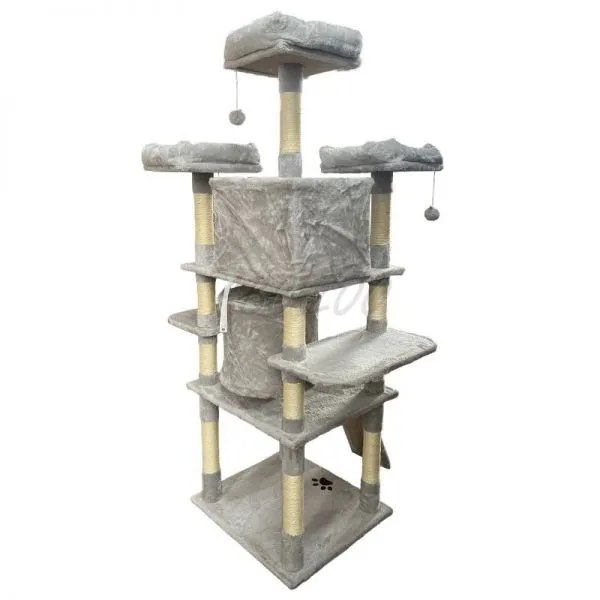 Toto vysoké a stabilné škrabadlo je ideálne pre domácnosti s jednou alebo viacerými mačkami, ktoré potrebujú priestor na aktívne trávenie času aj pokojné útočisko. Ponúka kombináciu rôznych prvkov ako sú vyhliadky, domčeky, rampa a hračky, čím poskytuje mačke maximálne pohodlie a zábavu. Sisalové stĺpiky podporujú prirodzený inštinkt mačiek na škrabanie, čím chránia váš nábytok pred poškodením.