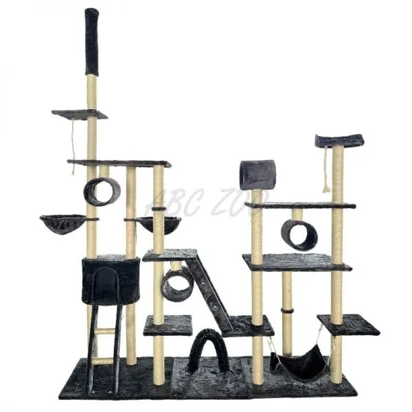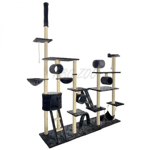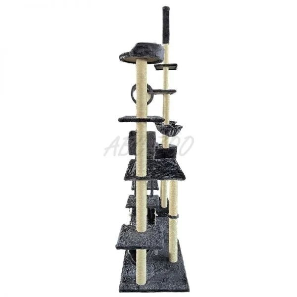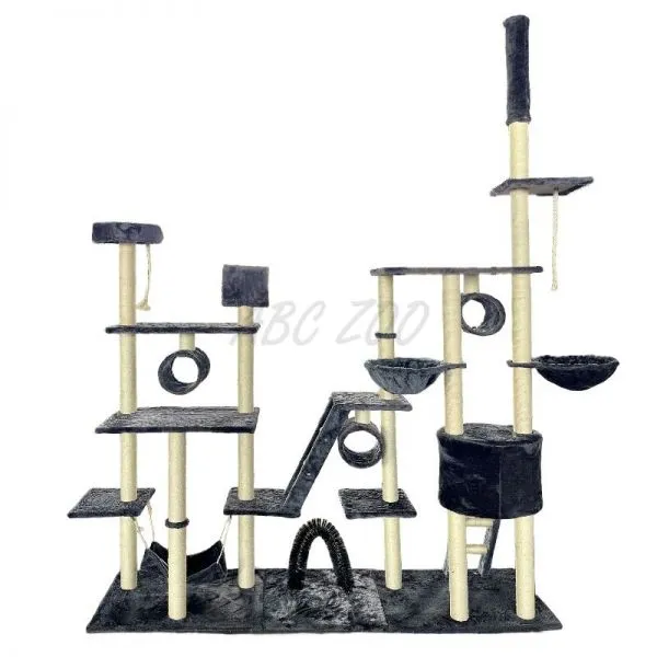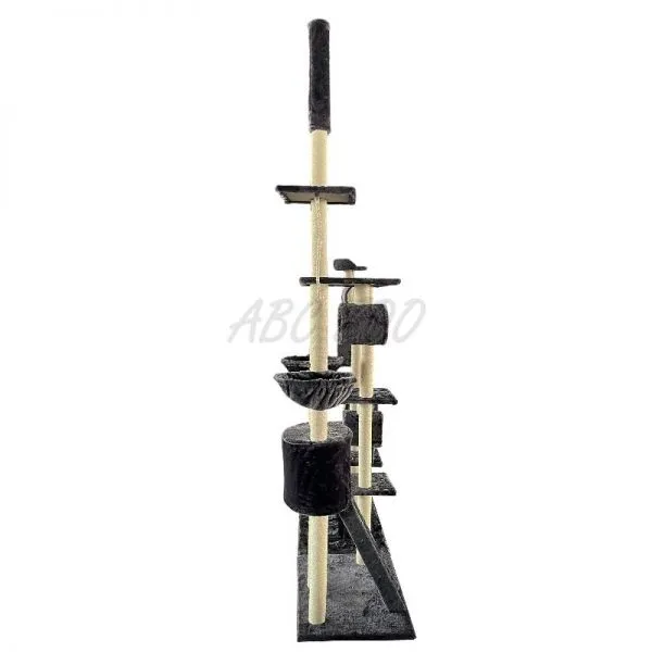 Toto luxusné škrabadlo ponúka viacúrovňový priestor na hranie, šplhanie, spanie aj škrabanie a je ideálnou voľbou pre domácnosti s viacerými mačkami. Vďaka svojej výške až 260 cm a bohatej výbave zahŕňa všetko, čo mačka potrebuje pre fyzickú aktivitu aj relax – niekoľko vyhliadkových plošín, domček, hojdaciu sieť, rebríky, hračky, sisalové stĺpiky aj tunely. Pevná konštrukcia a mäkké čalúnenie zabezpečujú bezpečnosť a pohodlie pre všetky vekové kategórie mačiek.