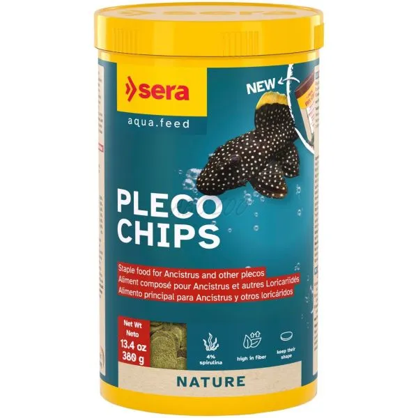 sera Pleco Chips 1000 ml - základné krmivo pre prísavníkov (Ancistrus) a iné druhy lorikárií vo forme rýchlo klesajúcich chipsov.