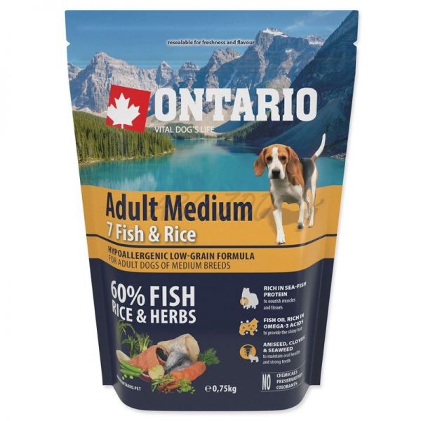 ONTARIO Adult Medium 7 Fish & Rice 0,75 kg