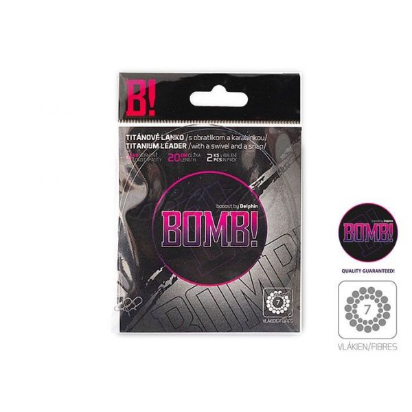 Titánové lanko je tým pravým lankom pre rybárov s najvyššími nárokmi. Vysoká ušľachtilosť a špičkové vlastnosti sú u tohto produktu samozrejmosťou. Toto lanko je špecifické svojou výnimočnou jemnosťou, ale aj nekompromisnou odolnosťou voči ostrým zubom a prekážkam! Vďaka vlastnostiam tohto lanka je s ním akákoľvek manipulácia veľmi príjemná a ľahká. Navyše jeho materiálové zloženie umožňuje nástrahu odprezentovať na špičkovej úrovni aj tým najopatrnejším predátorom! Na jednej strane lanka BOMB! sa nachádza obratlík a na druhom karabínka. V každom balení sa nachádzajú až 2 kusy tohto odolného lanka! Veľkosti obratlíkov prislúchajúce k lankám: - 35cm/12kg- obratlík # 6, karabínka # 1, 7 vlákien