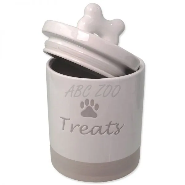 Táto dóza s objemom 1500 ml je vyrobená z kvalitnej keramiky a udrží pamlsky čerstvé a chránené pred vlhkosťou dlhú dobu. S praktickým viečkom je manipulácia jednoduchá a rýchla, čo oceníte pri každodennom kŕmení vášho psa.