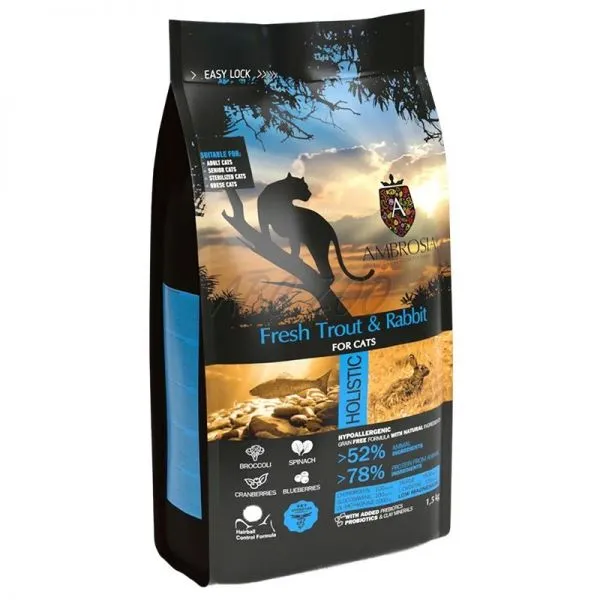 Ambrosia Senior, Light & Sterilized Cat, Fresh Trout & Rabbit 1,5 kg