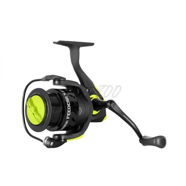 Navijak je vybavený siedmymi (6+1) guľôčkovými ložiskami a prevodovým pomerom 5.2:1, ktorý zabezpečí dostatočne rýchle sťahovanie montáže k brehu bez väčšej námahy. FEEDERA má tiež pevný nerezový hriadeľ a hrubý kovový preklápač s roľničkou zvyšujúci odolnosť a silu tohto modelu. Sklopná kľučka navijaku má čiernu matnú úpravu a čierne gumené madlo, ktoré sa príjemne drží v ruke. Brzda disponuje dostatočnou silou a zároveň poskytuje potrebnú citlivosť pri zdolávaní rýb na jemný feedrový prút.