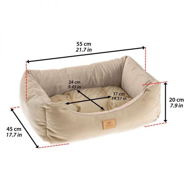 Pelech má útulné polstrované boky a odnímateľný obojstranný vnútorný vankúš. Vpredu je nižší, aby sa vášmu chlpatému kamarátovi ľahšie liezlo dnu a von, zatiaľ čo boky sú tvarované a pokryté mäkkou zamatovou látkou, aby vášho domáceho maznáčika privítali v teplom objatí.