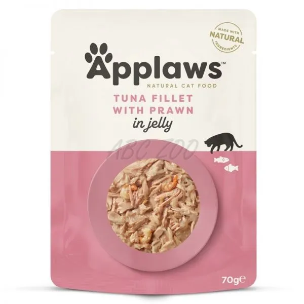Applaws Tuna Fillet with Prawn in Jelly je prémiové prírodné krmivo v kapsičke pre mačky, vyrobené z vysokokvalitného mäsa z tuniaka a kreviet v lahodnom želé.
