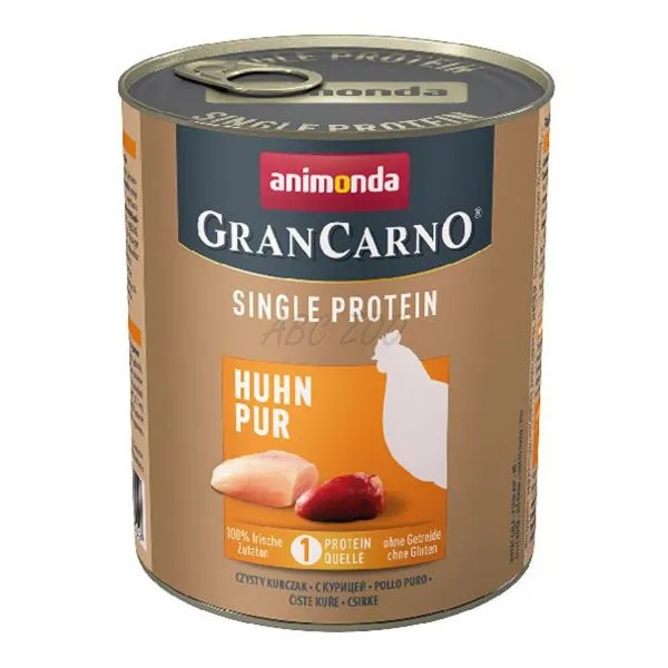 Animonda GranCarno Single Protein je monoproteínová konzerva s kuracím mäsom pre dospelé psy (1-6 rokov) všetkých plemien.