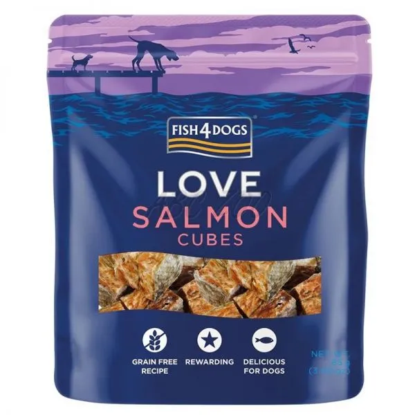 Fish4dogs sú chutné 100 % prírodné pochúťky bohaté na lososa, pre všetky psy v každom veku.