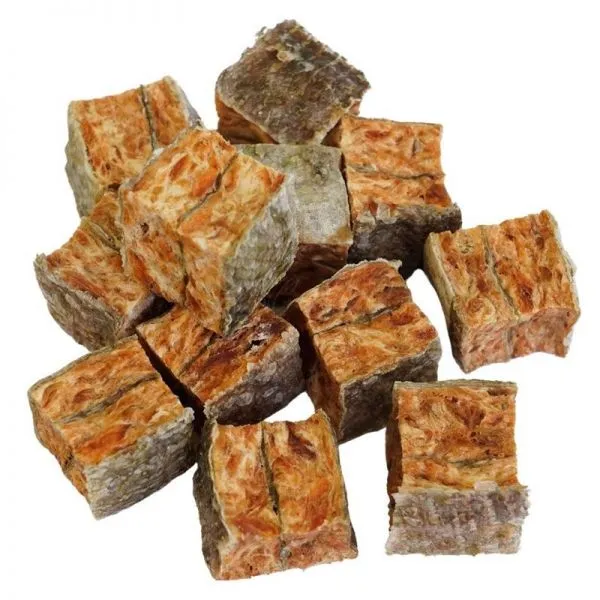 Zloženie: losos 85 %, koža z bielej ryby 6 %, rastlinný proteín, škrob, glycerín