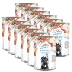 Konzerva Calibra Verve s morčacím a jahňacím mäsom pre šteňatá a juniorov.