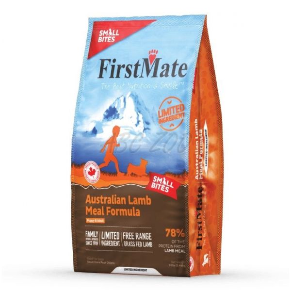 Krmivo FirstMate's Australian Lamb je vyrobené z jahňacieho mäsa kŕmeného trávou a voľne chovaného bez pridaných hormónov alebo antibiotík. Toto krmivo s obmedzeným množstvom zložiek je skvelé pre psy s alergiami a diétnymi obmedzeniami. Menej zložiek robí toto zloženie ľahko stráviteľným. Malé granule sú ideálne pre menšie plemená.