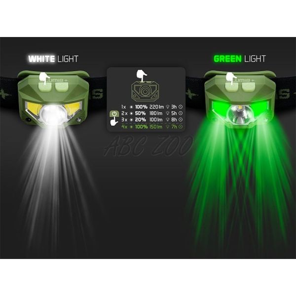 Čelová lampa s výkonom 3 W a svietivosťou 220 lm, vybavená dvoma LED diódami, ktoré umožňujú prepínanie medzi klasickým bielym a zeleným svetlom. Viac detailov