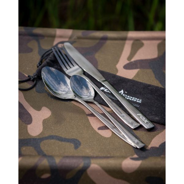Praktická príborová sada z nerezovej ocele v čiernej farbe. Obsahuje kávovú lyžičku, nôž, vidličku a lyžicu.
