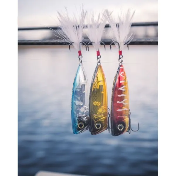 Niet nič vzrušujúcejšie, ako keď dravec vyletí k hladine a zaútočí na vašu nástrahu – a World Pop v tomto smere rozhodne nesklame. Je mimoriadne všestranná: môžete ju viesť jemnou kľukatou akciou „Walk the dog“ pomocou drobných, pravidelných potiahnutí. Ak však chcete vytvoriť väčší rozruch a vyprovokovať dravce ešte intenzívnejšie, použite rýchle a razantné trhnutie, ktoré vytvorí silný „pop“ efekt, rozhýbe veľké množstvo vody a spustí u predátorov tvrdé útoky. Okrem toho je World Pop vybavený technológiami FLASH BOOST a SCALE BOOST, ktoré maximalizujú vizuálne lákanie.