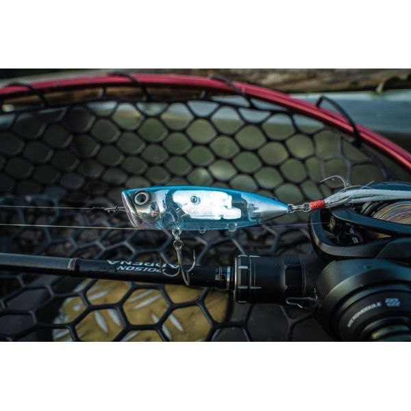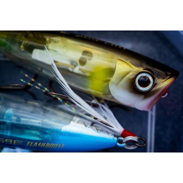 Niet nič vzrušujúcejšie, ako keď dravec vyletí k hladine a zaútočí na vašu nástrahu – a World Pop v tomto smere rozhodne nesklame. Je mimoriadne všestranná: môžete ju viesť jemnou kľukatou akciou „Walk the dog“ pomocou drobných, pravidelných potiahnutí. Ak však chcete vytvoriť väčší rozruch a vyprovokovať dravce ešte intenzívnejšie, použite rýchle a razantné trhnutie, ktoré vytvorí silný „pop“ efekt, rozhýbe veľké množstvo vody a spustí u predátorov tvrdé útoky. Okrem toho je World Pop vybavený technológiami FLASH BOOST a SCALE BOOST, ktoré maximalizujú vizuálne lákanie.