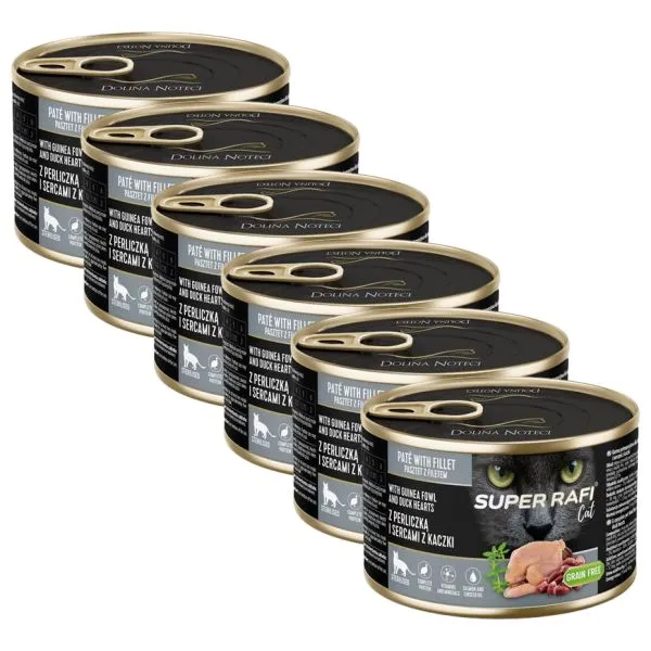Super Rafi Cat Sterilised P&F Guinea fowl and Duck hearts 6 x 185 g