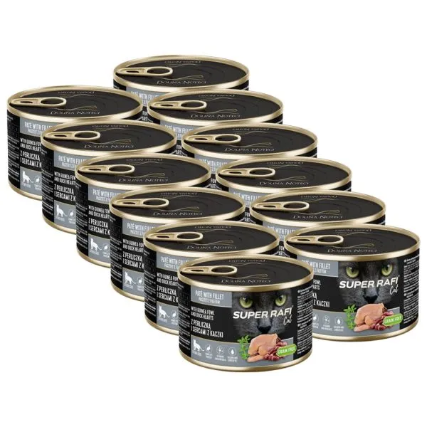 Super Rafi Cat Sterilised P&F Guinea fowl and Duck hearts 12 x 185 g