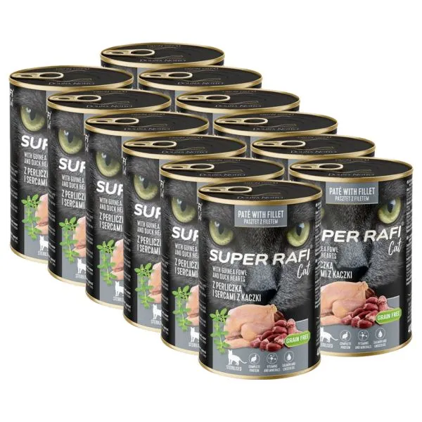 Super Rafi Cat Sterilised P&F Guinea fowl and Duck hearts 12 x 400 g