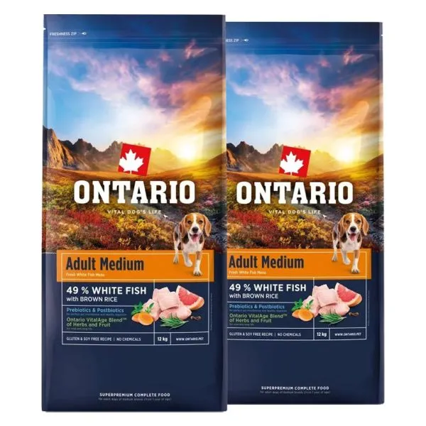 Ontario Adult Medium Fish & Brown Rice 2 x 12 kg