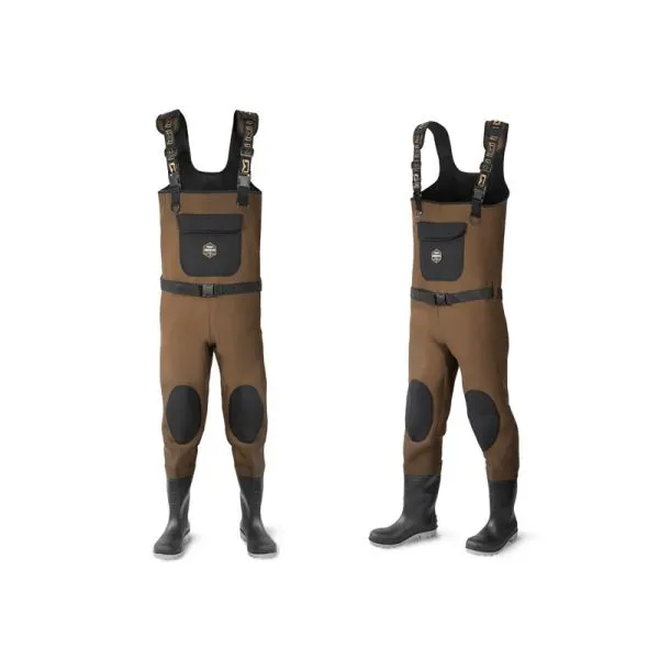 Pri zimnej rybačke treba myslieť hlavne na tepelný komfort. Ten dokážu ideálnym spôsobom zabezpečiť neoprénové prsačky Delphin ORAVA. Vyznačujú sa kvalitným vyhotovením a elegantným dizajnom. Každé prešitie a namáhané spoje sú precízne ošetrené, aby zabránili neželanému presakovaniu. Hnedá farba neoprénu zamedzí vzniku veľkého množstva viditeľných škvŕn zo slizu a ďalších rôznych nečistôt. Neodmysliteľným pomocníkom je neoprénové vrecko na prednej strane prsačiek, kde si môžete odložiť napríklad povolenie na rybolov. Nemusíte sa báť ani kľaknutia na zem, pretože v kolennej časti sú prsačky spevnené dvojitou vrstvou neoprénu. Nastaviteľné popruhy na plecia sú taktiež vybavené neoprénovou výstelkou, aby bolo nosenie prsačiek počas celodenných vychádzok pohodlné a ramená menej namáhané. Pod trakmi sa taktiež nachádzajú dva plastové krúžky, na ktoré sa dajú pomocou joja, alebo karabíny uchytiť rôzne pomôcky, ako napríklad pean alebo meter. Súčasťou balenia je aj brodiaci opasok, ktorý zamedzí natečeniu vody do prsačiek pri neželanom pošmyknutí sa alebo páde. Gumené čižmy s odolnou a stabilnou podrážkou vás podržia aj v náročnejších podmienkach. Ich vnútro je vystlané neoprénovou vložkou, ktorá chráni nohy pred chladom.