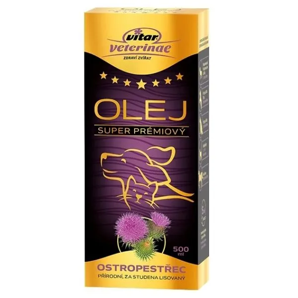 Pestrecový olej Vitar Veterinae je prírodný doplnok stravy určený pre psy a mačky, ktorý podporuje zdravie pečene a celkovú vitalitu zvierat.
