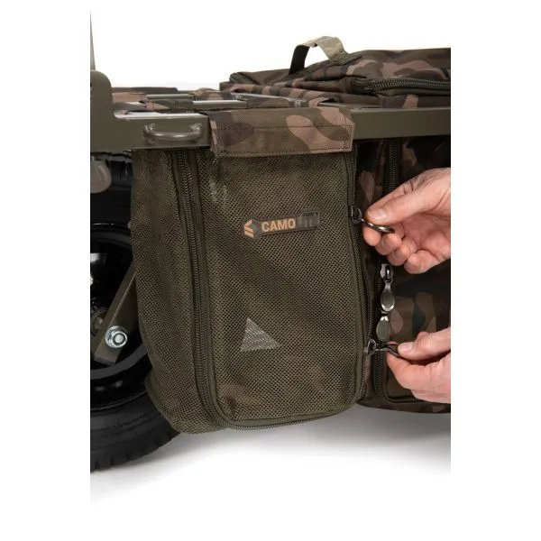 • Vysúvací predný nosič tašky – umožňuje umiestniť Camolite Barrow Bag (predáva sa samostatne) do prednej časti vozíka pri použití v „session mode“ a pri preprave lehátka