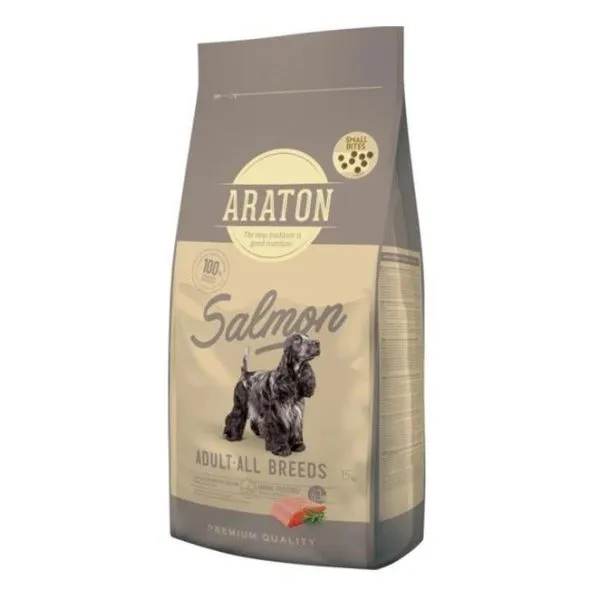 ARATON Dog Adult All Breeds je prémiové krmivo s lososom a ryžou pre dospelé psy všetkých plemien.