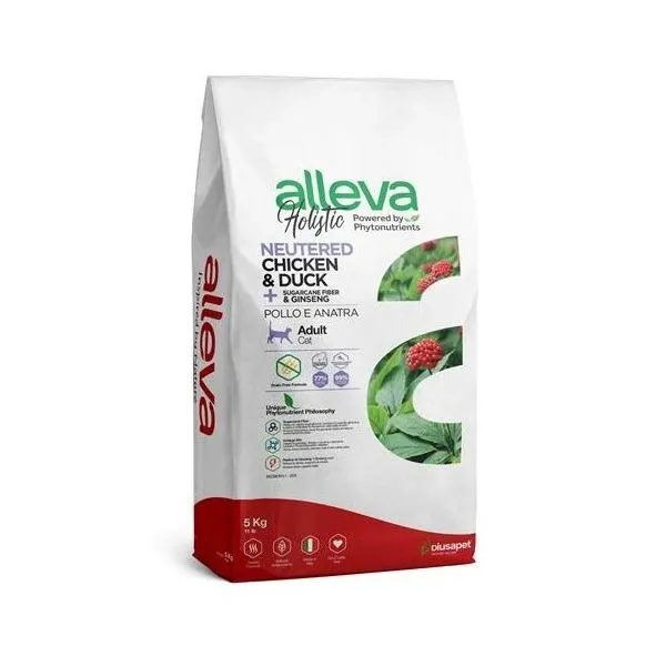 Alleva je bezobilné holistické krmivo z kuracieho mäsa pre dospelé kastrované mačky.