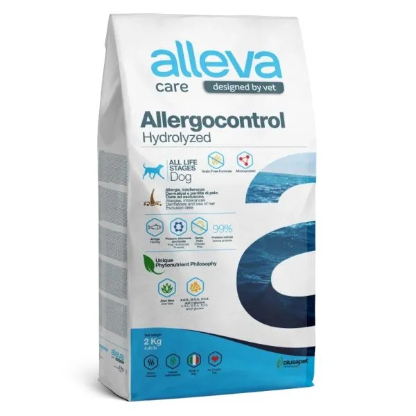 Alleva Care Allergocontrol využíva ako jediný zdroj bielkovín hydrolyzované slede s nízkou molekulovou hmotnosťou (70 % do 2000 Daltonov, max. 6000 Daltonov), čím pomáha minimalizovať imunitné reakcie. Zdrojom sacharidov je čistený zemiakový škrob bez obsahu bielkovín, čo znižuje riziko alergií. Vysoký obsah esenciálnych mastných kyselín (LA, EPA a DHA) zo sleďov a slnečnicového oleja prispieva k zdravej pokožke, zatiaľ čo vysoko čistený extrakt z aloe vera podporuje regeneráciu kože, výživu epitelu a imunitnú rovnováhu.