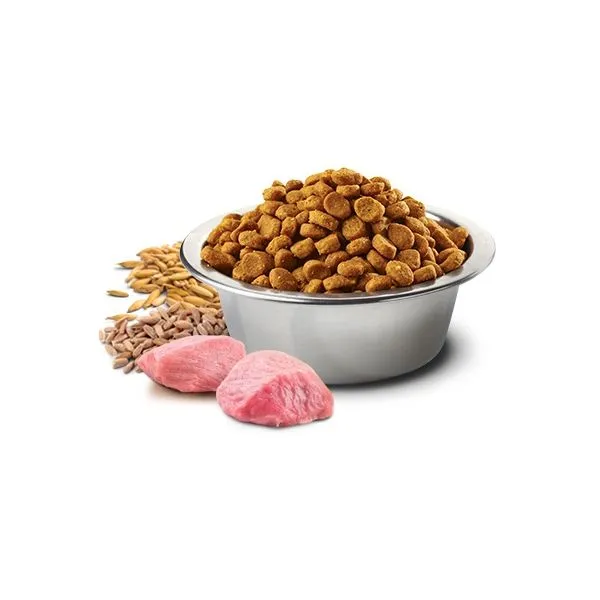 Zloženie: vykostená kuracina (20%), sušený kurací proteín (20%), špalda (pšenica špaldová) (10%), ovos (10%), kurací tuk, sušený proteín zo sleďa, cukrovarské rezky sušené, rybí olej (zo sleďov), sušená mrkva, lucernová múčka, kuracie chrupavky (zdroj glukozamínu a chondroitin sulfátu), inulín, fruktooligosacharidy, výťažok z kvasníc (zdroj manno-oligosacharidov), sušený banán (0,5%), sušené kiwi (0,5%), sušené mango (0,5%), sušená papája (0,5%), sušený ananás (0,5%), sušený špenát, psýllium (semená a plevy), chlorid sodný, sušené pivovarské kvasnice, kurkuma, výťažok z aloe vera.