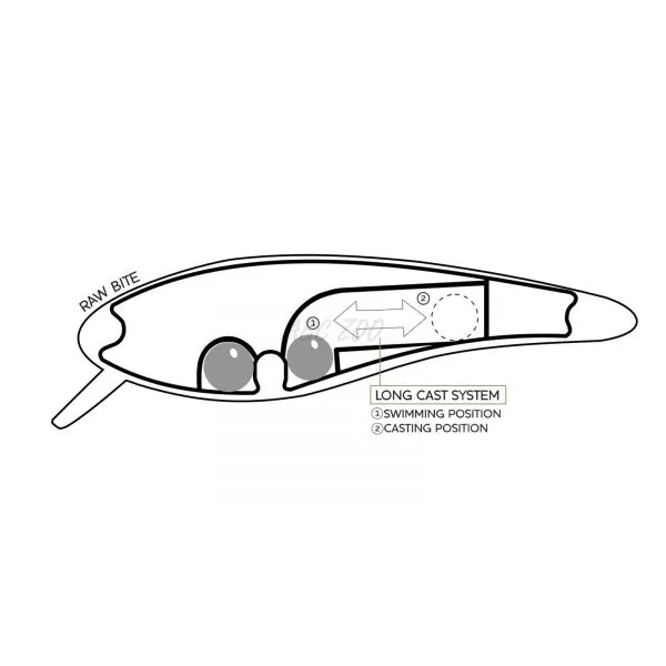 RawBite je vybavený integrovaným systémom dlhého hodu, v ktorom sa oceľová guľôčka pri nahodení presunie do chvosta pre väčší dolet a po začatí ťahania sa vráti späť do brucha, čím vytvára neodolateľný plávací pohyb.