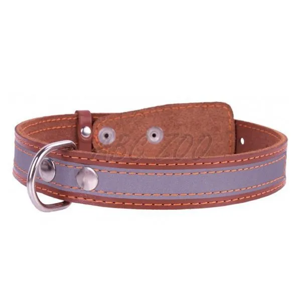 Reflexný kožený obojok v hnedej farbe dĺžky 32- 40 cm, šírka 20 mm.