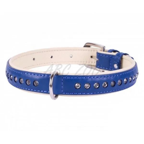 Kožený obojok Brilliance v modrej farbe s malými kryštálmi dĺžky 21 - 27cm a šírky 15mm.