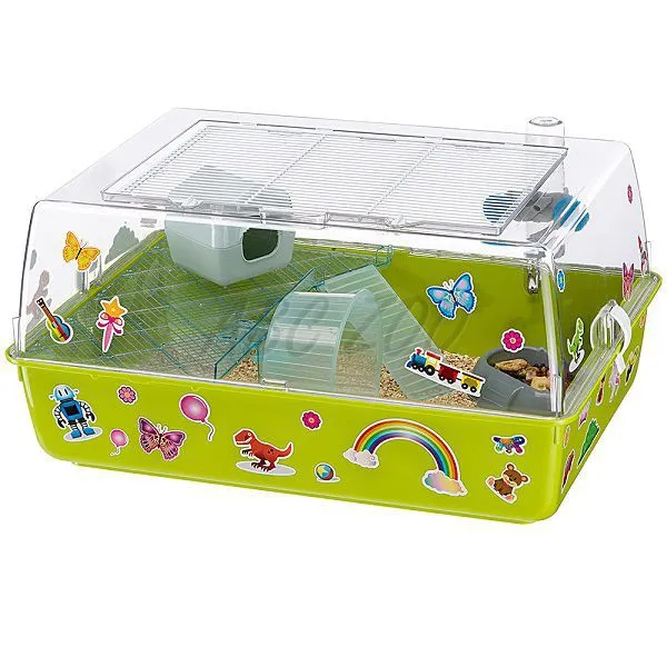Klietka je rozdelená na dve časti. Spodnú časť tvorí nepriehľadná plastová vanička. Vrchnú časť tvorí strieška z priehľadného plastu. Vo vrchnej časti je zabudovaná mreža, ktorá slúži ako dvere pre uľahčenie prístupu do klietky.