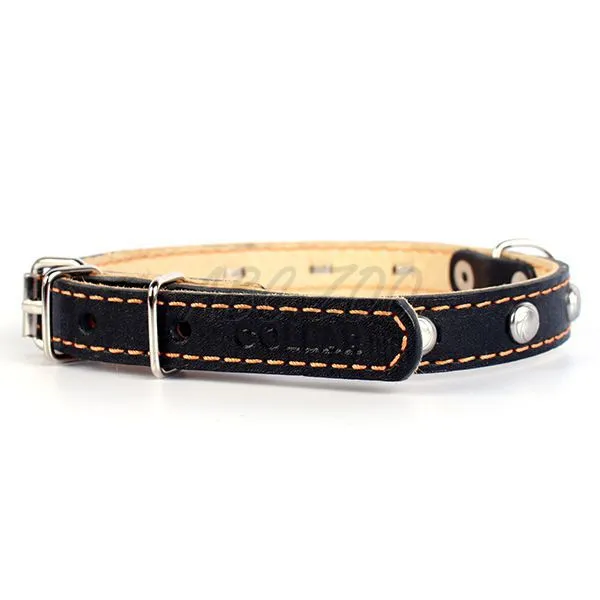 Ručne šitý, polstrovaný a elegantný obojok s kovou dekoráciou. Vyrobený z vysoko kvalitnej kože.