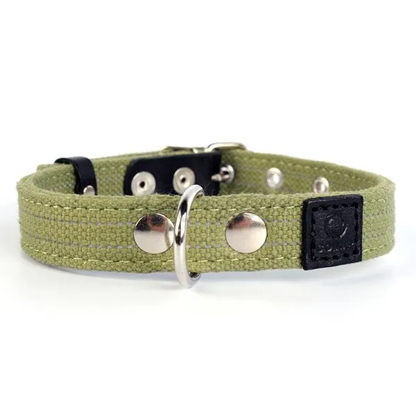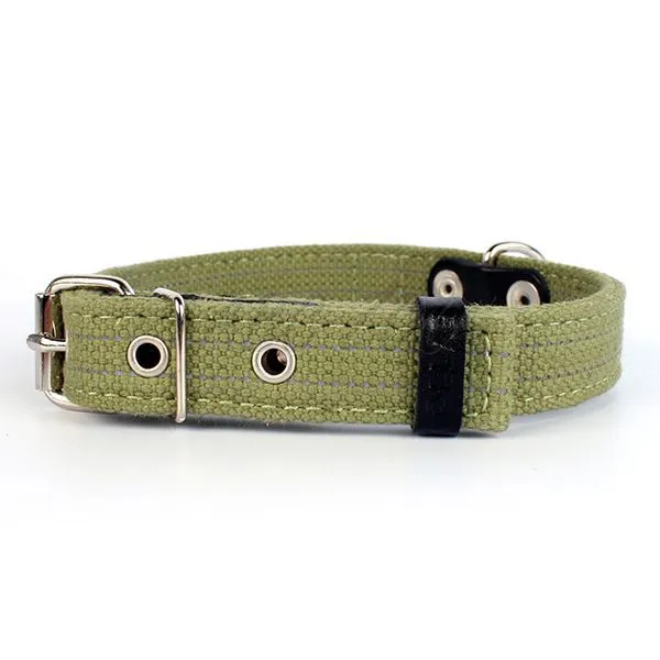 Bavlnený dvojvrstvový obojok v kombinácií s kožou. Reflexné nitky sú všité, nie sú len nastriekané. Bavlna je pre psa a majiteľa príjemnejšia a prirodzenejšia ako nylon.