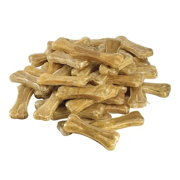 Doplnkové krmivo pre psíka na žuvanie, v podobe kosti vyrobenej z hovädzej kože. Viac detailov