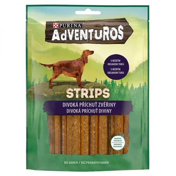 Lahodné mäsové prúžky s nízkym obsahom tukov a príchuťou zveriny pre dospelých psov všetkých plemien.