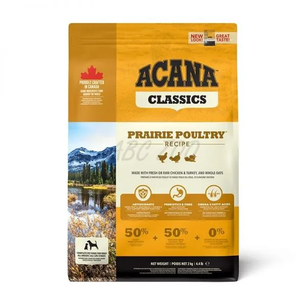 ACANA Prairie Poultry je plnohodnotné a biologicky vyvážené krmivo pre psy všetkých plemien a vekových kategórií s hydinovým mäsom.
