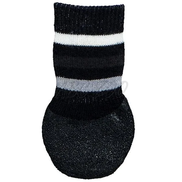 Protišmykové ponožky pre psov čiernej farby s pásikmi po obvode.