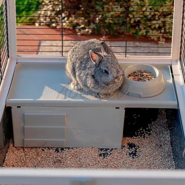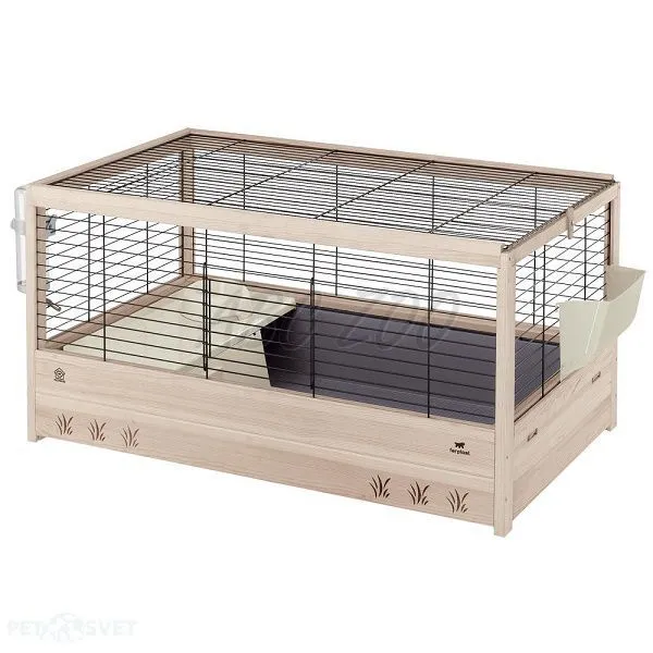 Doprajte svojmu králikovi alebo morčaťu komfortné a bezpečné bývanie s klietkou Arena 100. Táto priestranná klietka kombinuje drevo a kov, čím vytvára stabilné a estetické prostredie pre vašich miláčikov. Je vyrobená z FSC™ certifikovaného dreva pochádzajúceho z udržateľne obhospodarovaných lesov. Vďaka praktickému plastovému výsuvnému dnu je údržba klietky jednoduchá a rýchla.